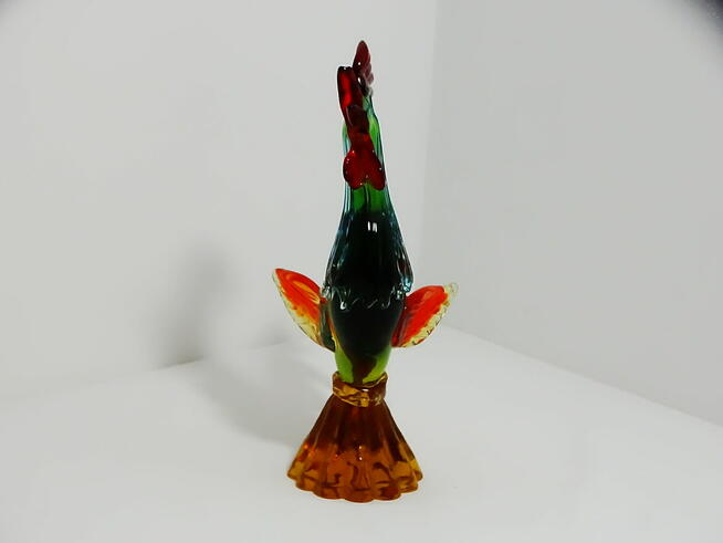 Figurka ze szkła Murano przedstawiająca koguta w dynamicznej pozie 26 cm Figurka w bardzo dobrym stanie co widać na ...