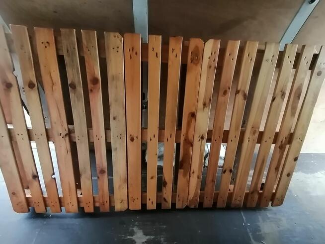 Witam posiadam stelaż z Palet polakierowane wymiary szerokość 120 cm długość 220cm wysokość 15 cm w trzech częściach.