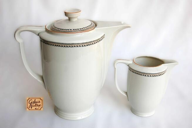 Dzbanek i mlecznik, fason Aleksander, porcelana Ćmielów, lata 60 XX w. Sygnowana. Biała, szkliwiona porcelana jest ...