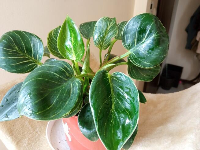 Sprzedam kwiaty ze zdjęć: Filodendron birkin ładnie rośnie, gęste sadzonki-15 zł Filodendron czerwieniejący red ...