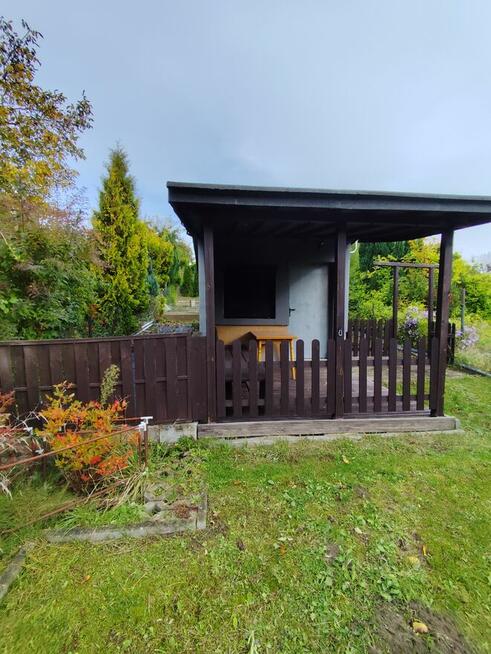 10Działka Rod Jedność Bydgoszcz ul Sulkowskiego 200m zadbana altanka murowana domek gospodarczy drzewa owocowe i krzewy ...