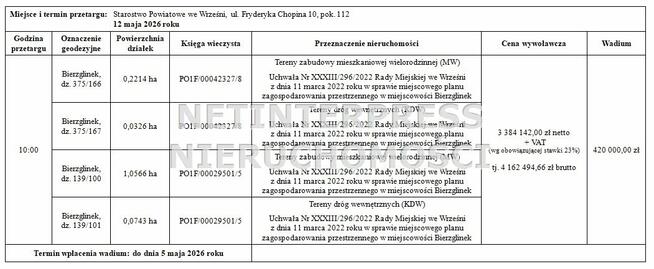 Zarząd Powiatu Wrzesińskiego ogłasza IV przetarg ustny nieograniczony na sprzedaż części nieruchomości gruntowych ...