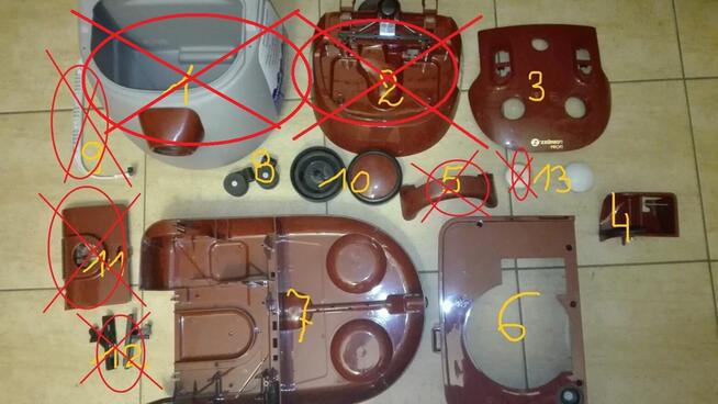 Odkurzacz na części -Zelmer Wodnik typ 619.5.D5E W Zestaw zawiera: 1.podstawa (skorupa)2 2.pokrywa górna +zaczep ...
