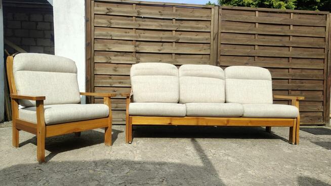 WYPRZEDAŻ! Sprzedam piękny komplet mebli wypoczynkowych - kanapa + fotel. Stelaż sosnowy. Meble pochodzą z lat 80-tych. ...