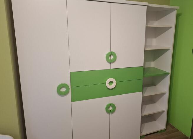 Komplet mebli do pokoju dziecka. Szafa 130x50x175cm, słupek 50x40x175 cm, komoda 95x40x90cm łóżko z pojemną ...