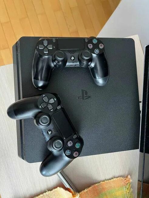 Sprzedam konsolę Sony PS4 w wersji slim z dyskiem 500gb. W zestawie pełne okablowanie, Pad, 4 gry widoczne na zdjęciu ...