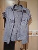 Koszula biała z czarnymi paseczkami. Zapinana na trzy guziczki z dekoldem.