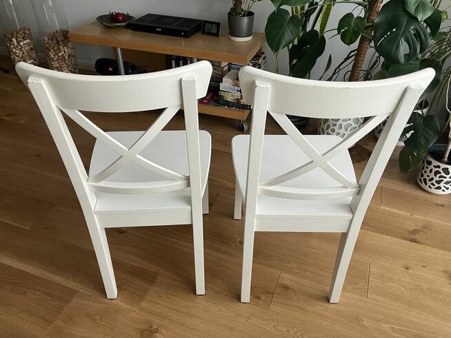 Sprzedam komplet 4 krzeseł INGOLF z IKEI Krzesła używane, posiadają drobne obtarcia Gratis dorzucamy poduszki, piąte ...