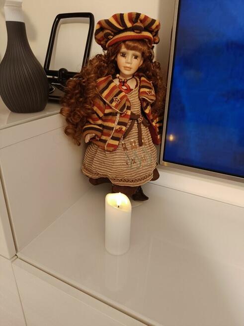 Porcelanowa lalka kolekcjonerska – blond włosy, granatowy strój z epoki Oferuję na sprzedaż wyjątkową porcelanową ...
