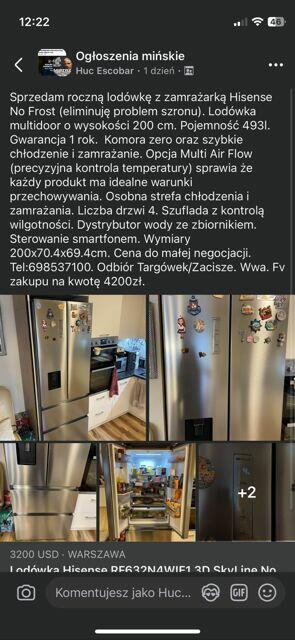 szprzedam lodówkę na gwarancji.Po zakupie okazało się że że nie przejdzie w domu przez schody .Stoi ...