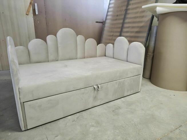 Łóżko tapicerowane z pojemnikiem. Stelaż metalowy komfort. Miękkie boki, przód i zagłowie (pianka4cm). Tkanina ...