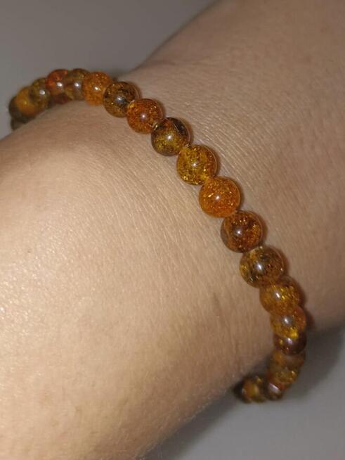 Bransoletka z bursztynu bałtyckiego na żyłce elastycznej jubilerskiej