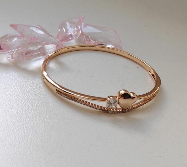 Nowa sztywna otwierana bransoletka z sercem i cyrkonią stal chirurgiczna mega wyprzedaż.
