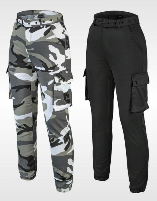 Dwie pary NOWYCH bojówek damskich w rozmiarze XL. Możliwość odbioru osobistego w Bydgoszczy. Cena to 200zł za zestaw.