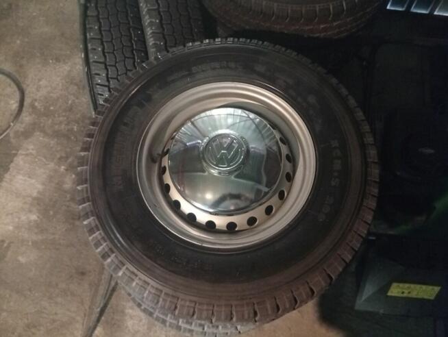 Koła 14 cali pod dekle chrom komplet z oryg felgami w oryginalnym lakierze.opony Michelin 205 75 14C z kolcami zimowe ...