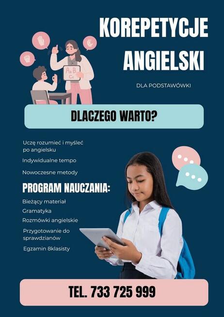 Masz ucznia, który potrzebuje wsparcia z angielskiego? Pomogę mu w nauce bieżącego materiału, nadrabianiu zaległości , ...