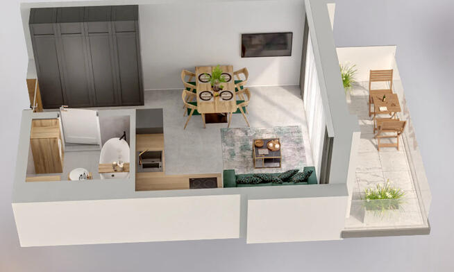 Mieszkanie składa się - Komunikacja - Salon z aneksem kuchennym - Łazienka z wc RAZEM : 25,29 m2 Dodatkowo : - ...