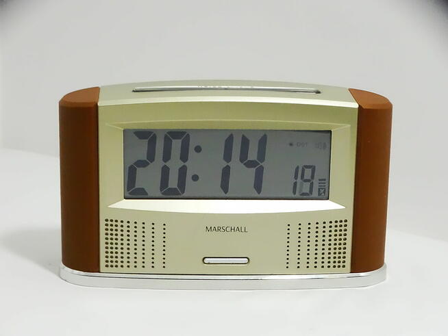 Mówiący radiowy zegar/budzik z termometrem wewnętrznym i datą Używany w bardzo dobrym stanie wizualnym co widać na ...