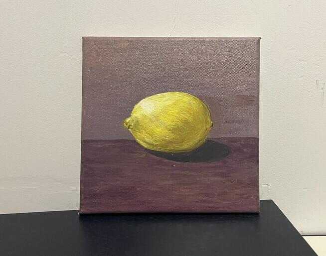 Obraz „ Cytrynka” Ten obraz napewno wniesie do wnętrza świeżość Technika: olej na płótnie Wymiary: 20 x 20 cm. W ...