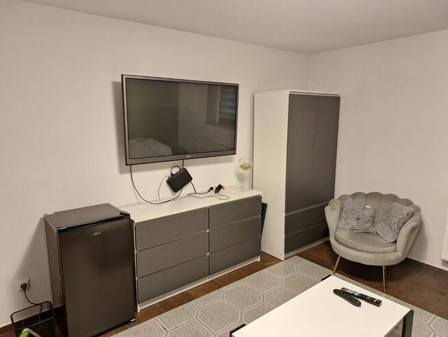 Samodzielny umeblowany duży pokój z prywatną łazienką z dużym TV, SAT, WIFI oraz własną lodówką. Do dyspozycji ...