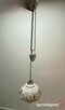 Stara lampa wisząca z kloszem i zwisem porcelanowym. W pełni sprawna, oprawka na gwint E27 i stary mosiężny koszyczek. ...