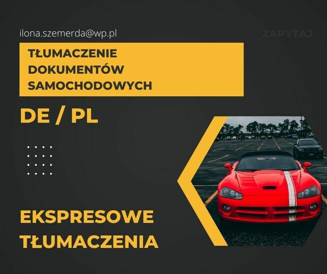Tłumaczenie dokumentów samochodowych i innych pojazdów (motocykli, przyczep itp.): - z Niemiec - z Austrii - ze ...