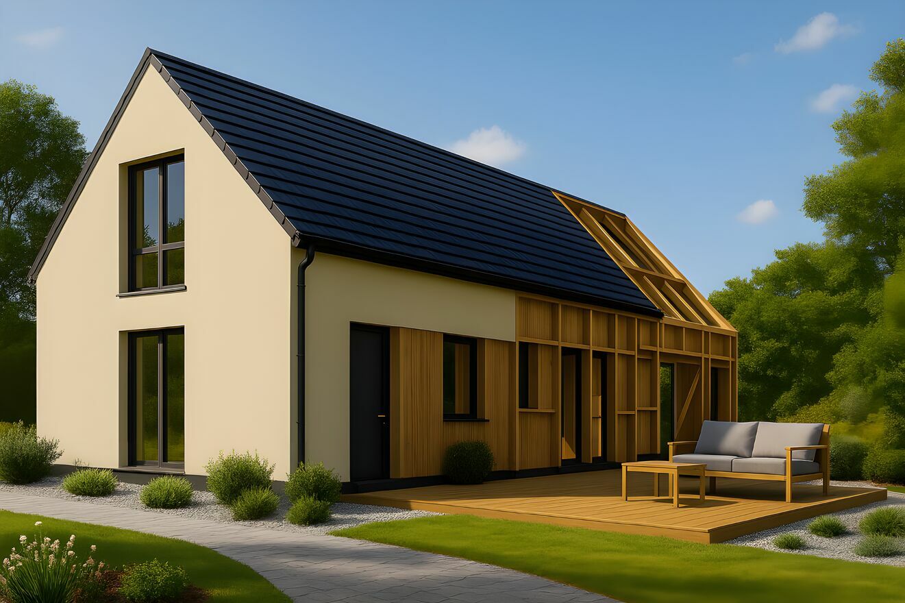 Specjalizujemy się w kompleksowej budowie domów w różnych systemach prefabrykacji: - ciężki szkielet niemiecki (system STEICO), - lekkie konstrukcje drewniane (tzw. kanadyjki), - technologia CLT (cross laminated timber), - prefabrykaty keramzytobetonowe. Oferujemy realizację w standardzie: - stan surowy otwarty, - stan surowy zamknięty, - stan deweloperski. Pracujemy zarówno na projektach typowych, jak i indywidualnych, dostosowanych do potrzeb i budżetu klienta. Dlaczego warto z nami? - krótki czas budowy dzięki prefabrykacji, - energooszczędne rozwiązania = niższe rachunki, - wysoka jakość wykonania i sprawdzone technologie, - doradztwo na każdym etapie inwestycji.Galeria zdjęć:
