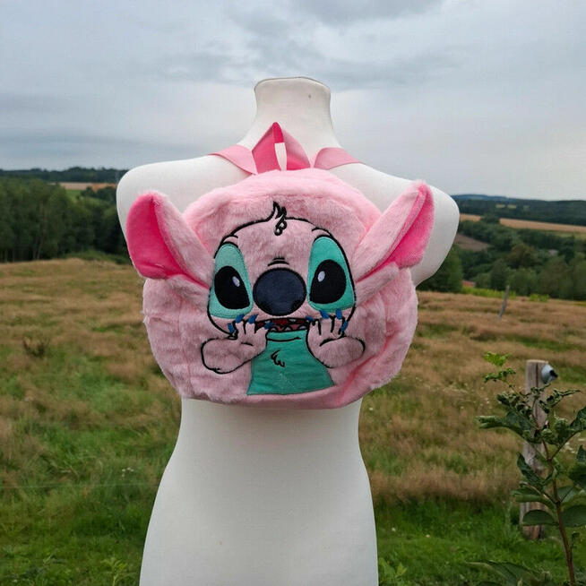 Uroczy, pluszowy plecak z motywem Stitch z filmu „Lilo & Stitch”. pudrowy róż sprawia, że trudno go nie zauważyć! ...