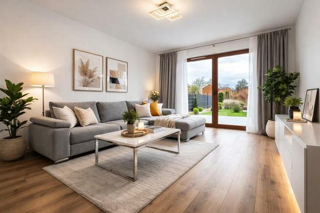 Na sprzedaż nowoczesny dom w zabudowie bliźniaczej o powierzchni 77,9 m2 z prywatnym ogrodem i dwoma miejscami ...