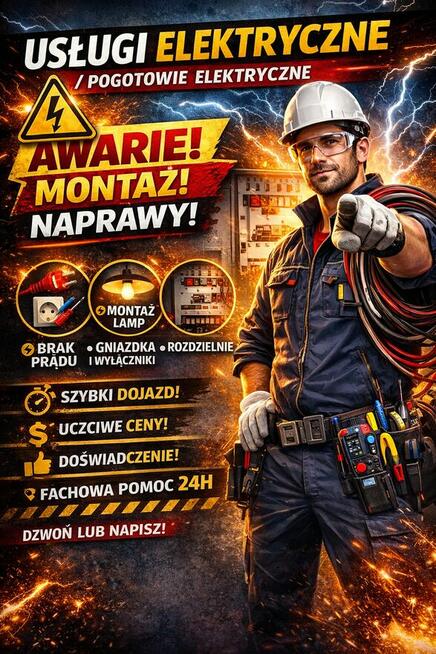 USŁUGI ELEKTRYCZNE / POGOTOWIE ELEKTRYCZNE Oferuję szybkie i solidne usługi elektryczne dla mieszkań, domów oraz ...