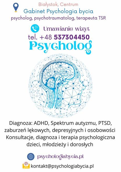 Prywatny Gabinet Psychologia bycia w Centrum Białegostoku zaprasza na profesjonalną diagnozę psychologiczną dzieci, ...