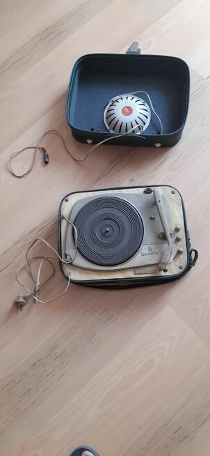 Gramofon bardzo dobrze zachowany, nie posiada igły, po podłączeniu do zasilania działa, zmienia prędkość , słychać ...