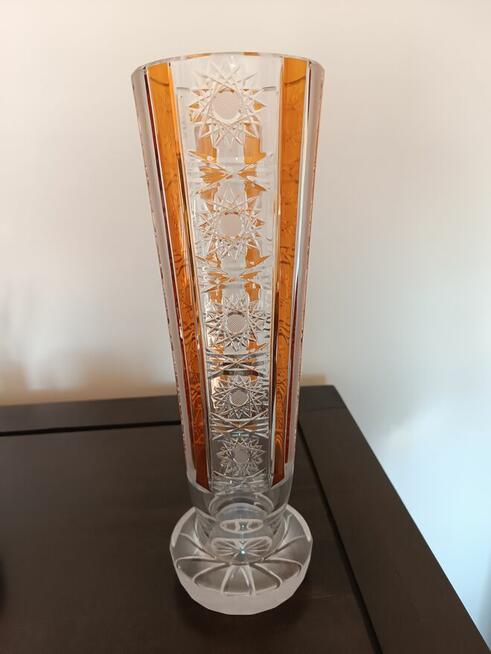 Kryształowy wazon z matowym ornamentem wysokość 18 cm średnica 10,5 cm stan bardzo dobry