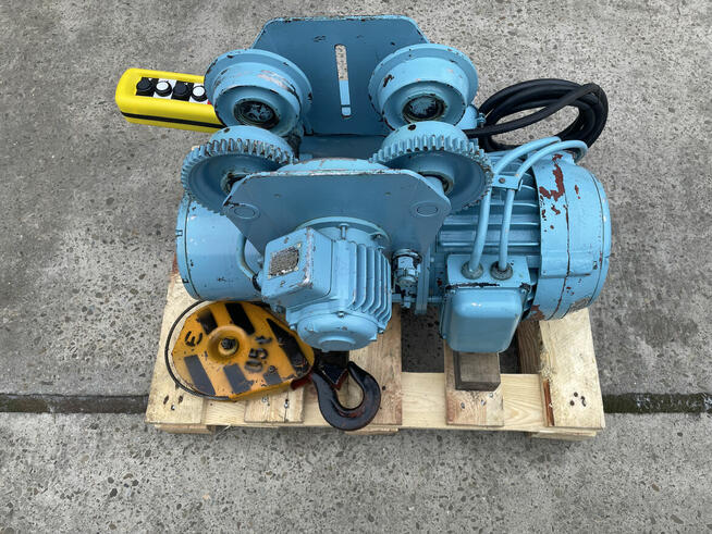 DWUBIEGOWY WCIĄGNIK ŁAŃCUCHOWY Z WÓZKIEM JEZDNYM ELEKTRYCZNYM 500kg BALKANCAR prod. Bułgarska WCIĄGNIK - stan ...