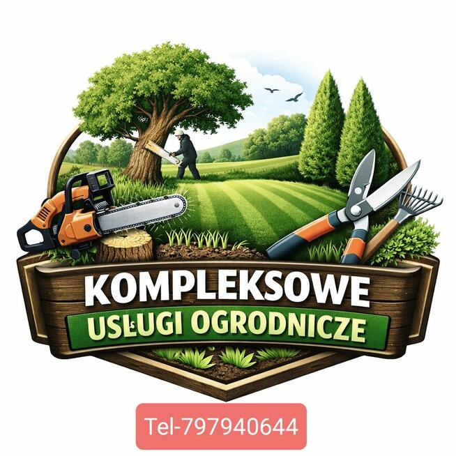 Pielęgnacja ogrodów Tel.797940644 Oferujemy Wycinka drzew Przycinka drzew Czyszczenie działek z drzew zarośli ...