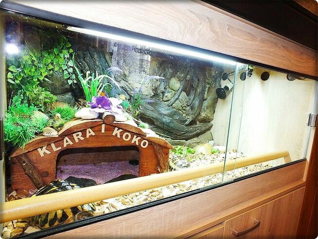 Sprzedam duże terrarium z szafką, razem z dwoma żółwiami i wyposażeniem - wszystko widoczne na zdjęciach. Żółwie ...