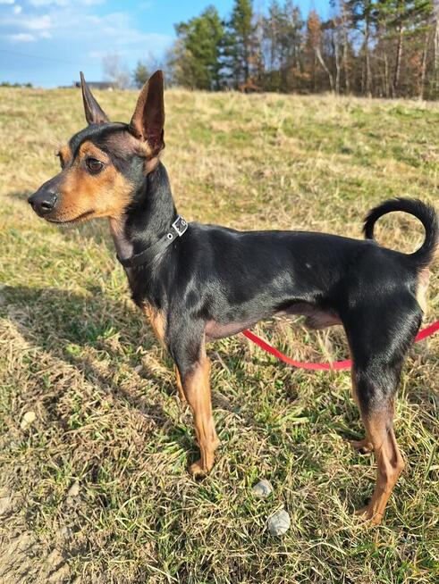 Pinczer ma 3 lata. Posiada wszystkie dokumenty. Więcej informacji udzielę telefonicznie.